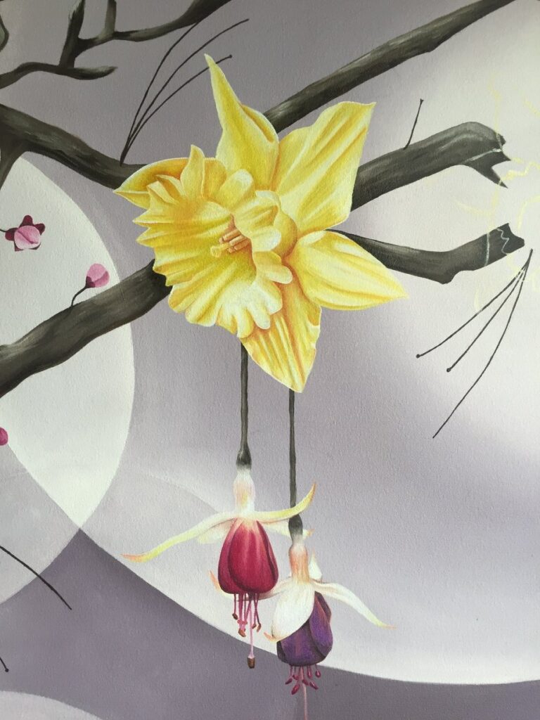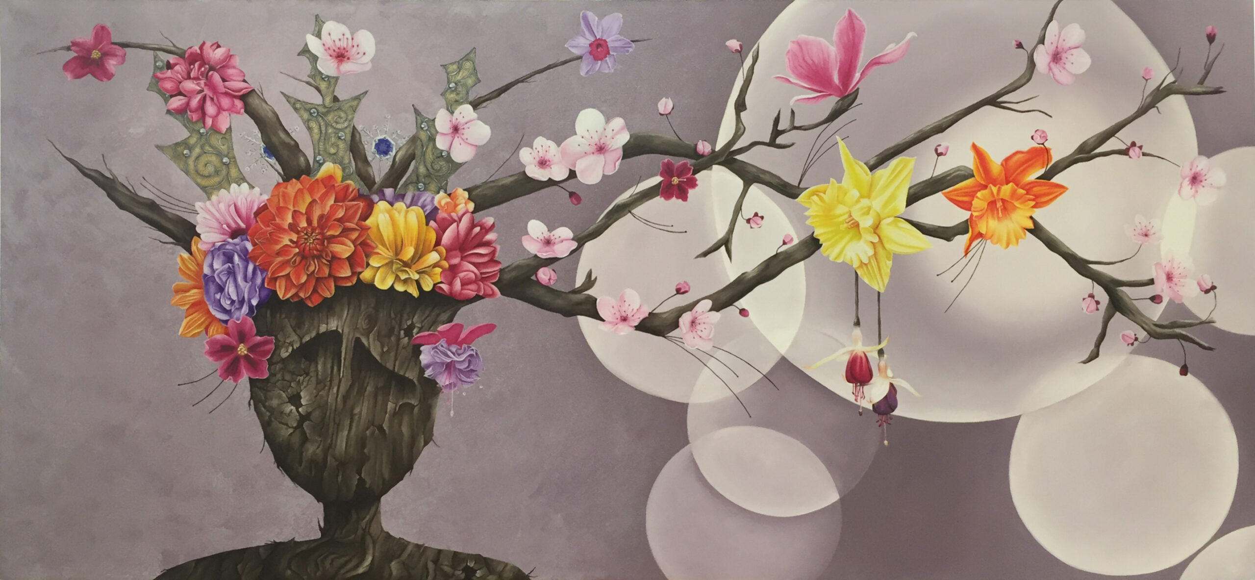 Inmarcesible quiere decir que no se puede marchitar. Y esa es la idea que me llevó a crear esta obra. Me imaginé un árbol lleno de flores que no se marchitan.