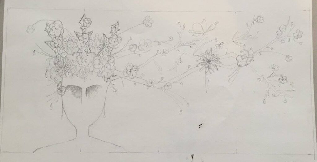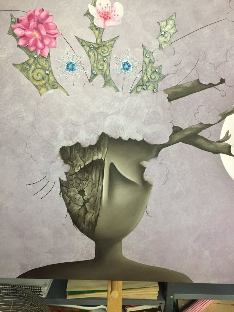 En la siguiente foto empezaba a poner la textura del rostro con algunas flores en la corona.